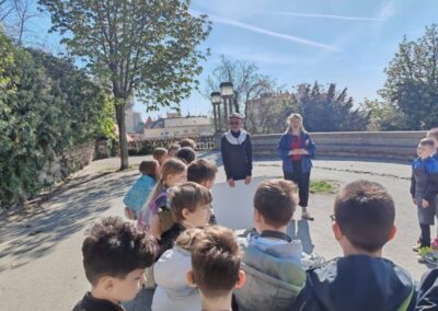 U četvrtak, 9. travnja 2026., učenici trećih razreda sudjelovali su u programu „Gornjogradske priče“. Nakon okupljanja kod kule Lotrščak, gdje su nam podijeljeni fertuni kakve su nekada nosili cehovi, uputili smo se na Strossmayerovo šetalište. Ondje smo upoznali glumce te saznali više o dvama glavnim naseljima starog Zagreba.