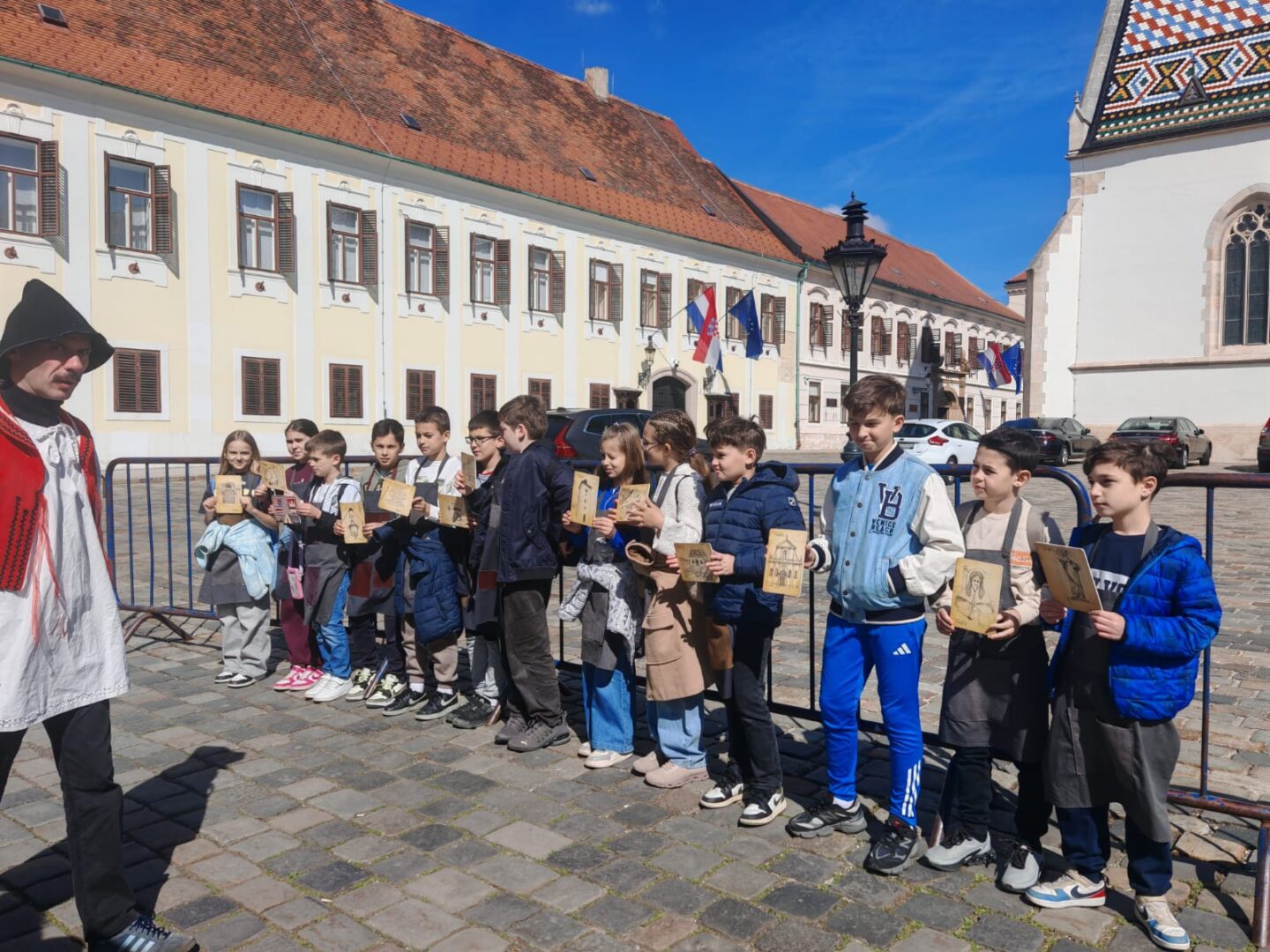 Za kraj smo se uputili na Trg svetog Marka kako Magda ne bi zakasnila na sajam. Kod crkve nas je iznenadio Petrica Kerempuh, od kojeg smo saznali više o Seljačkoj buni, Matiji Gupcu te samoj crkvi svetog Marka.