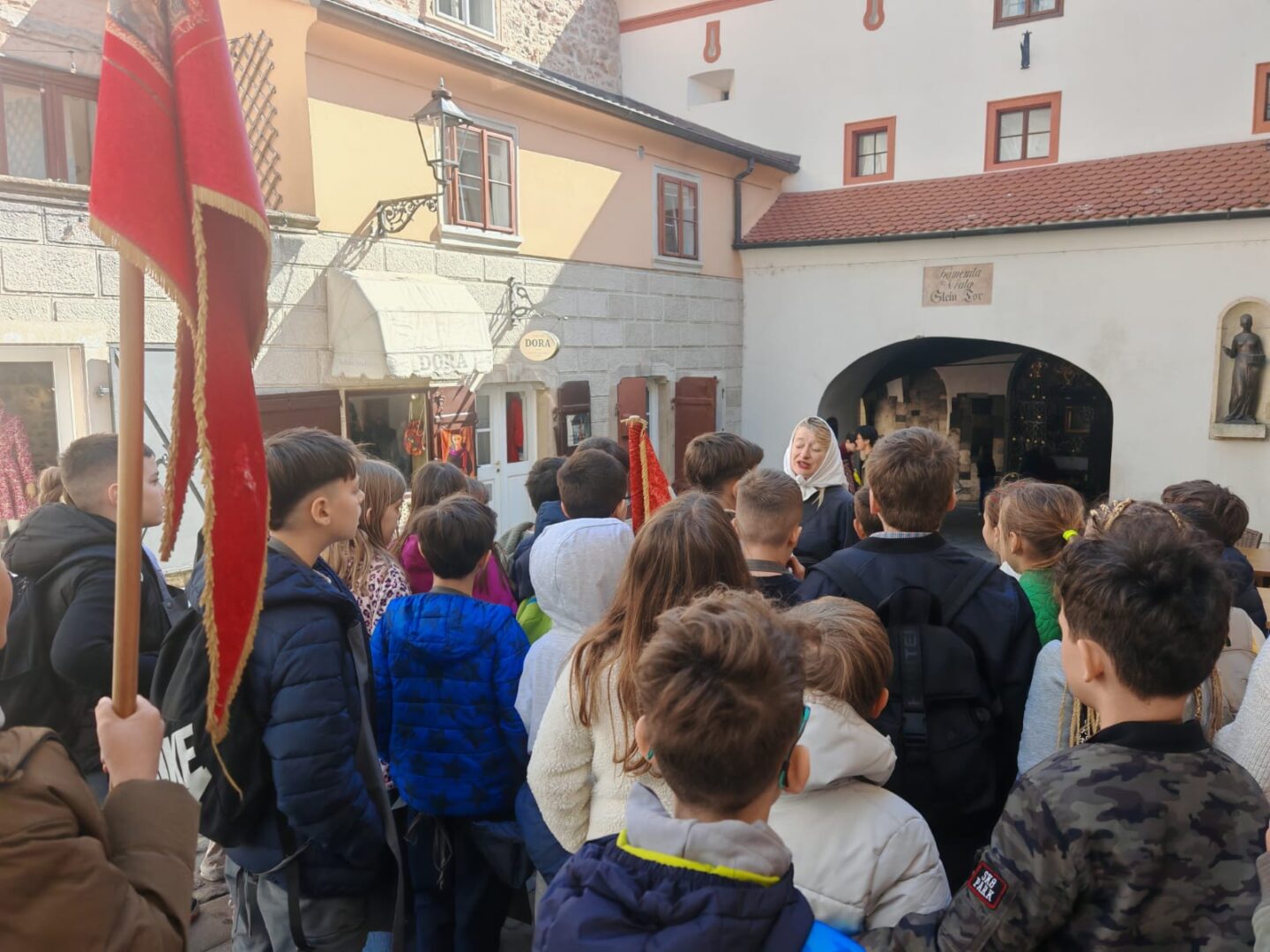 Habdelićevom ulicom, najmanjom ulicom u Zagrebu, stigli smo do prve ljekarne „K crnom orlu“, a potom i do Kamenitih vrata. Ondje nas je dočekala Magda Paprenjarka, koja nam je ispričala priču o Kamenitim vratima i Dori Krupićevoj.
