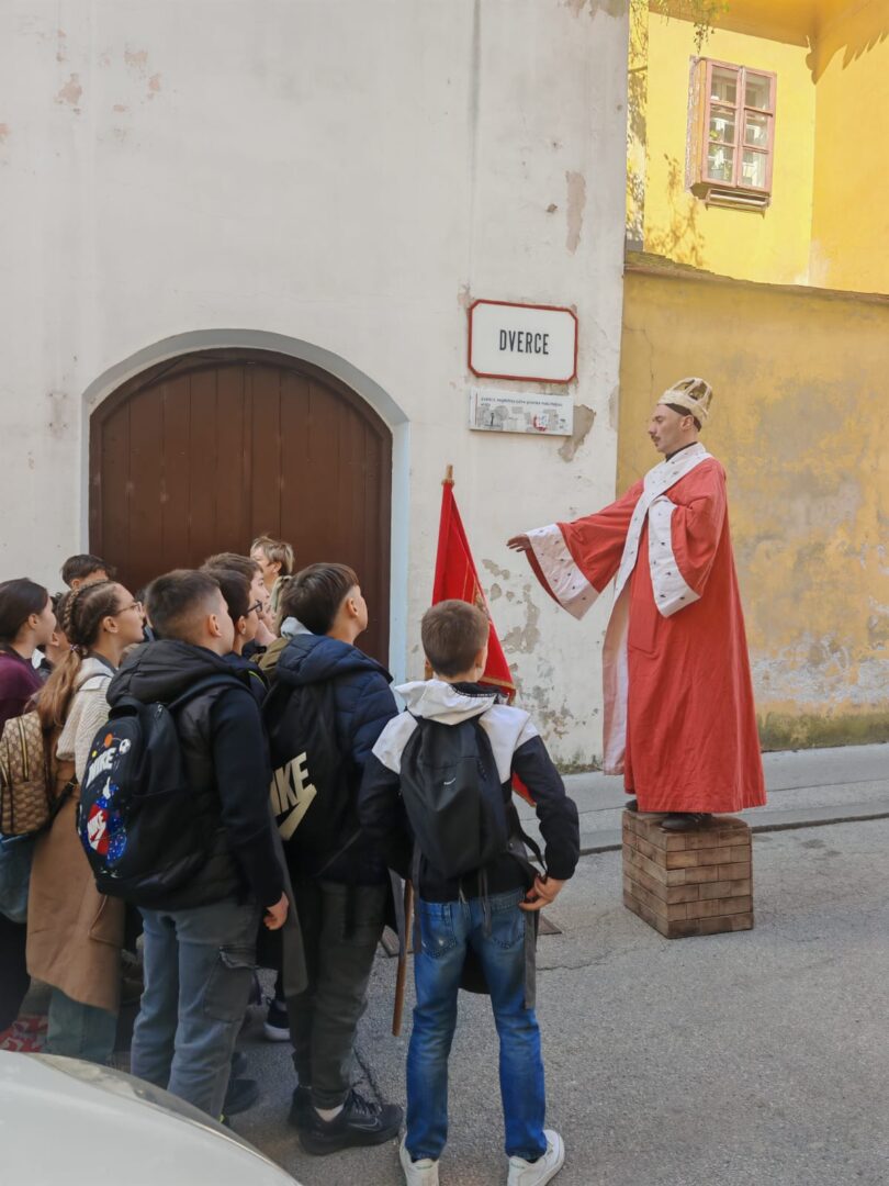 Program se nastavio pričom o podjeli stanovništva – tko je živio u kojem dijelu grada, Gradecu ili Kaptolu – nakon čega su učenici podijeljeni na srebrenare i krojače. Nakon upoznavanja Kaptola i Gradeca, vratili smo se do kule Lotrščak, gdje smo upoznali kralja Belu IV. On nas je upoznao s Gradcem, njegovim oslobođenjem, načinom života te Zlatnom bulom.