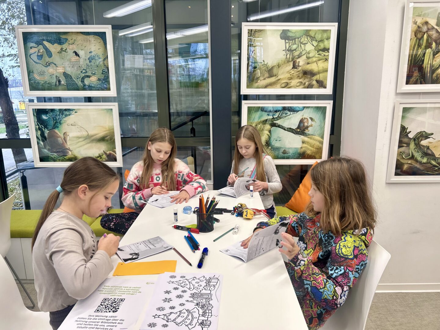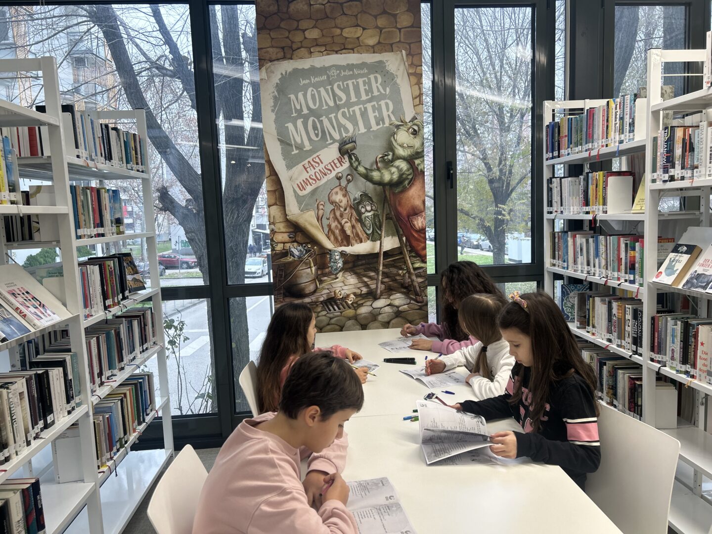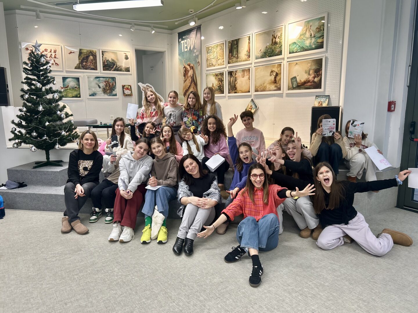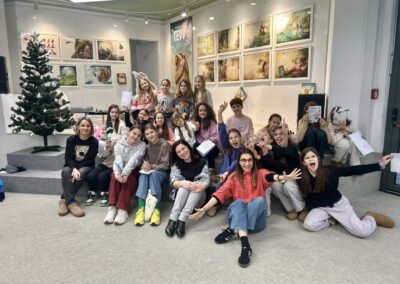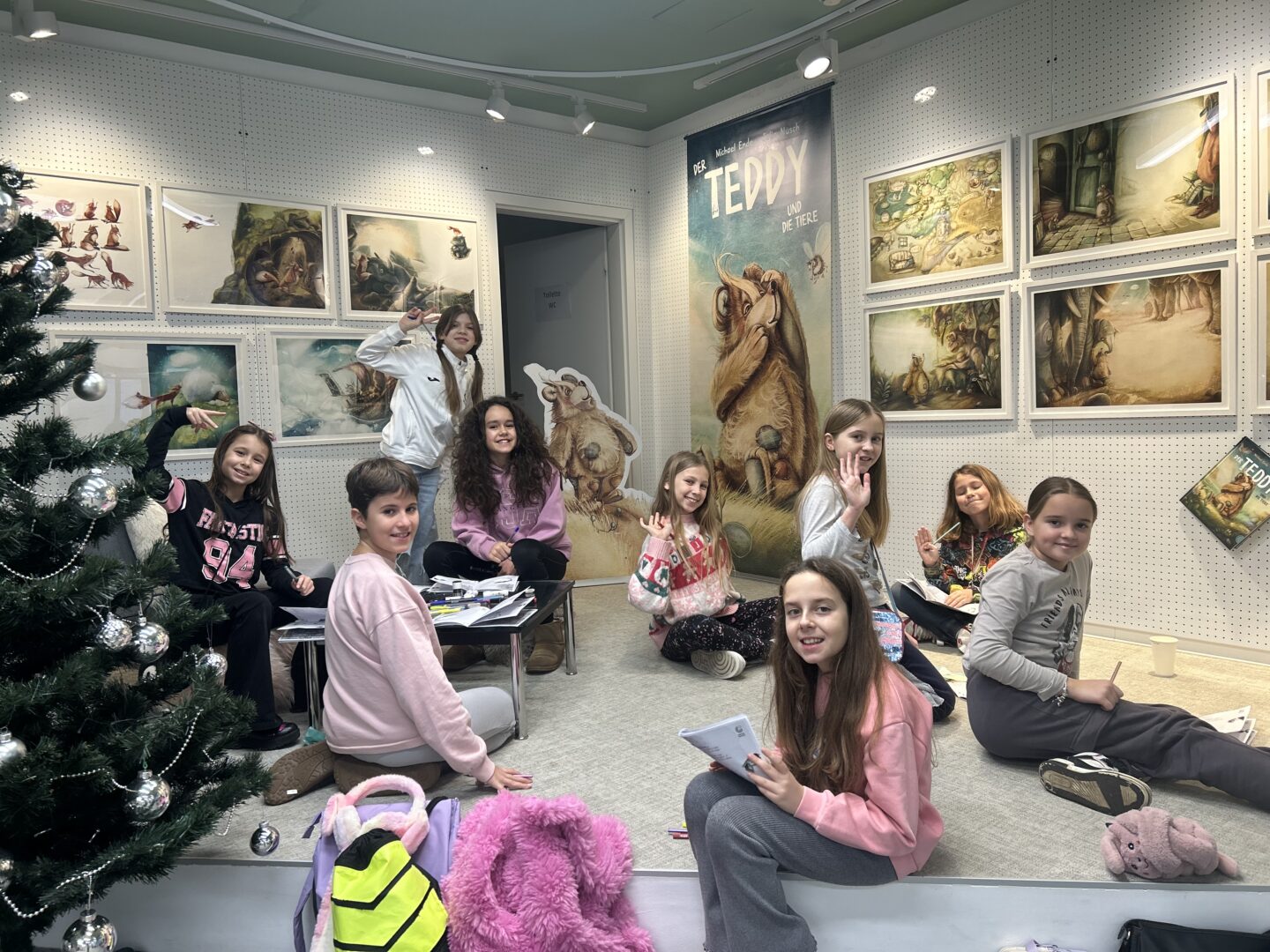 U utorak, 16. prosinca, učenici 4. i 5. razreda koji pohađaju izbornu nastavu njemačkog jezika posjetili su izložbu Čarobni svijet Julije Nüsch u organizaciji Goethe-Instituta Hrvatska. U pratnji učiteljica Karmele Jokić i Kristine Pilić Ivkošić, učenici su u sklopu izložbe sudjelovali u maštovitoj radionici „Abenteuer-Safari“, održanoj u knjižnici Goethe-Instituta u Zadarskoj ulici u Zagrebu. Posebnost ovog posjeta bila je što se čitav program, uključujući i radionicu, odvijao na njemačkom jeziku. Radionica je djeci pružila jedinstveno iskustvo istraživanja, stvaranja i otkrivanja na njemačkom jeziku. Tijekom čarobnog safarija kroz ilustracije iz slikovnica poznate umjetnice, učenici su upoznali Teddyja, uspavanu lisicu i brojne druge neobične likove. Tragajući za skrivenim detaljima i sitnim znakovima, istraživali su bogat i šarolik svijet Julije Nüsch te pritom otkrivali kako iz umjetničkih djela mogu nastati vlastite priče. Izložbeni prostor pretvorio se u pravu malu pustolovinu – mjesto susreta kreativnosti, igre i znatiželje. Ovom izložbom i popratnim radionicama Goethe-Institut Hrvatska nastoji približiti ilustraciju djeci predškolske i osnovnoškolske dobi te ih na zabavan i pristupačan način uvesti u razigrani likovni svijet umjetnice. Učenici su se kući vratili puni dojmova, nadahnuti i bogatiji za jedno prekrasno umjetničko iskustvo.